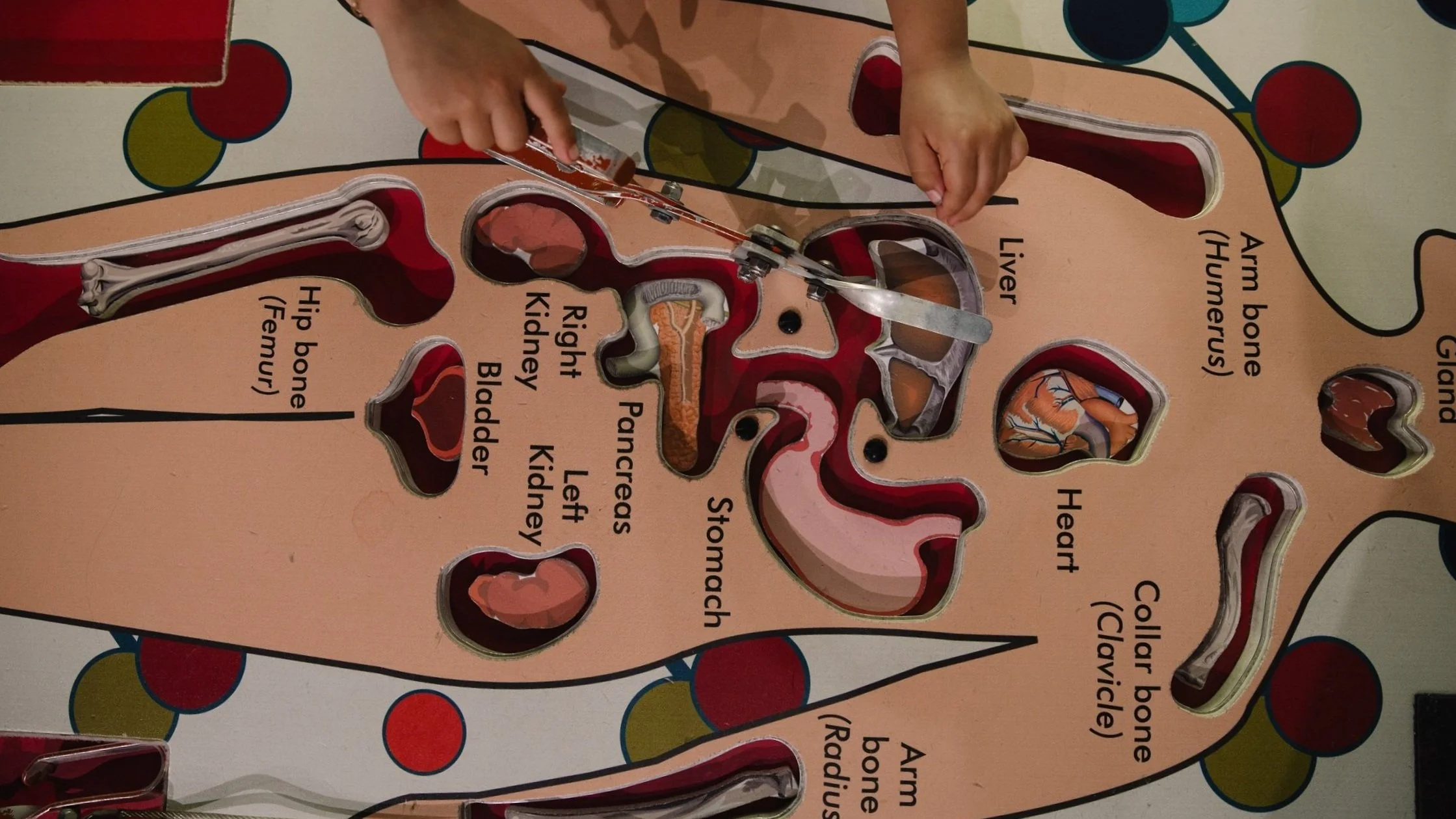 Our final design includes a large-scale “operation” game, dry-erase windows that can be used as drawing surfaces or as a “photo booth” with additional costume pin-ons, an x-ray view-master with stereoscopic slides to help students learn the differences between living and non-living things, and a medical equipment scavenger hunt.